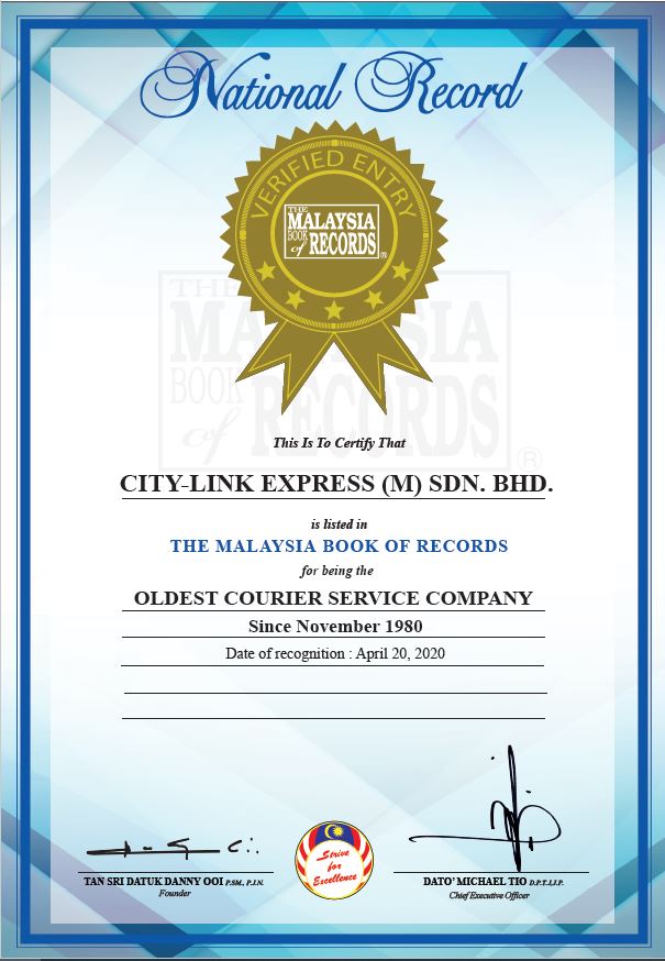 City-Link Express awarded by Malaysian Book of Records 2020