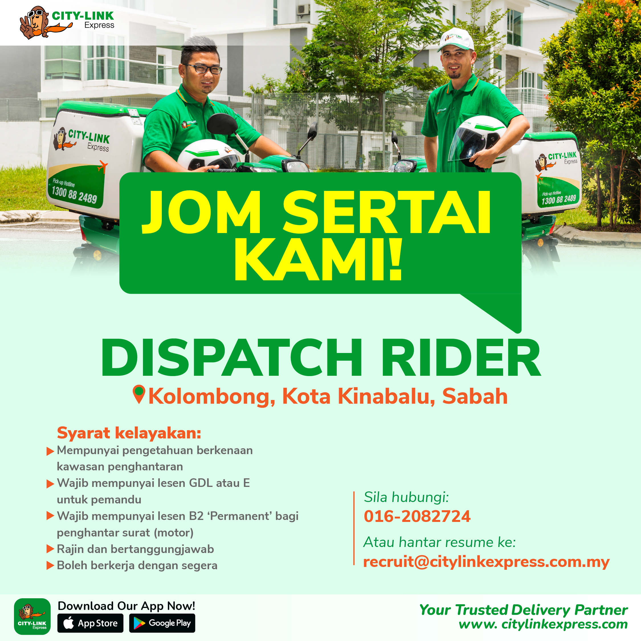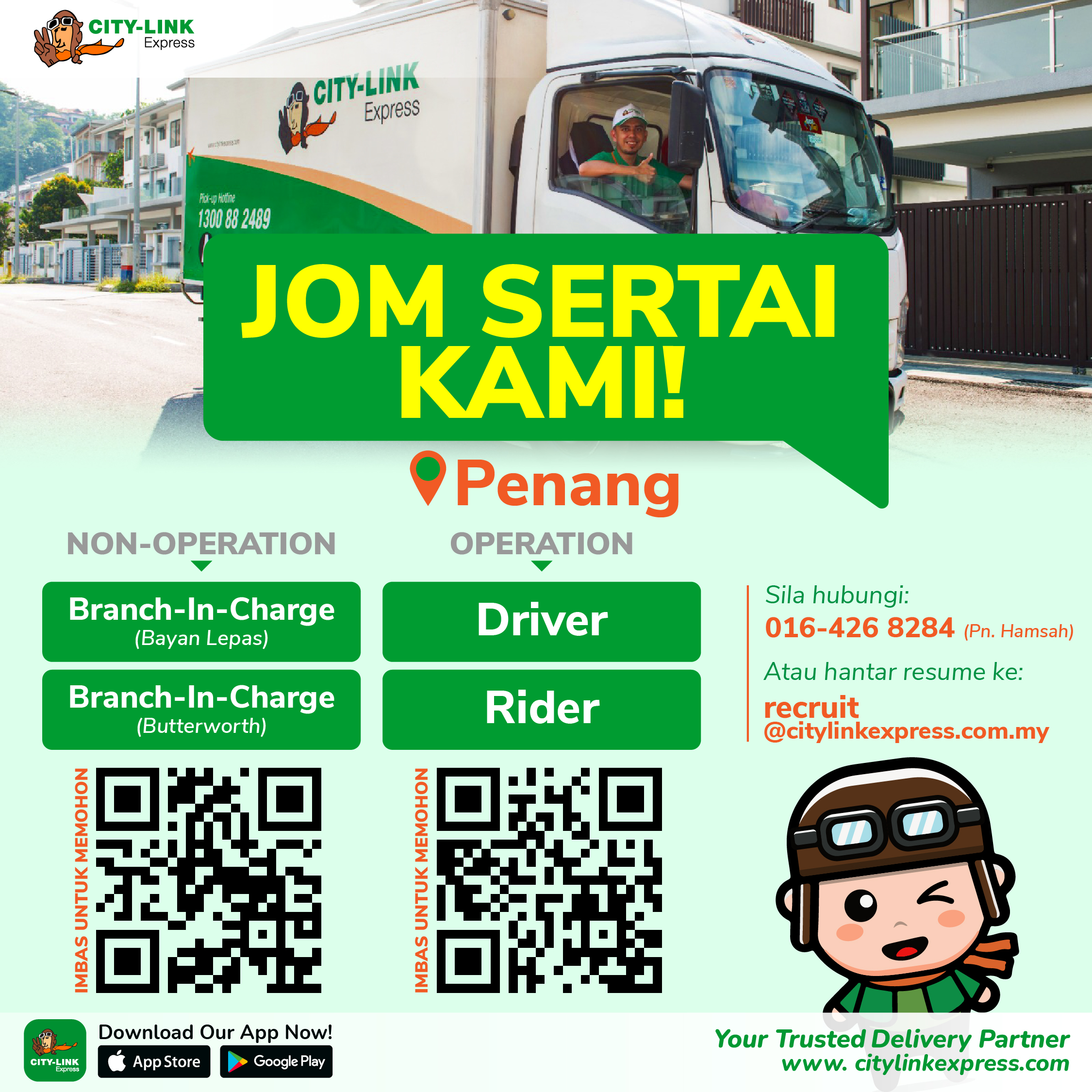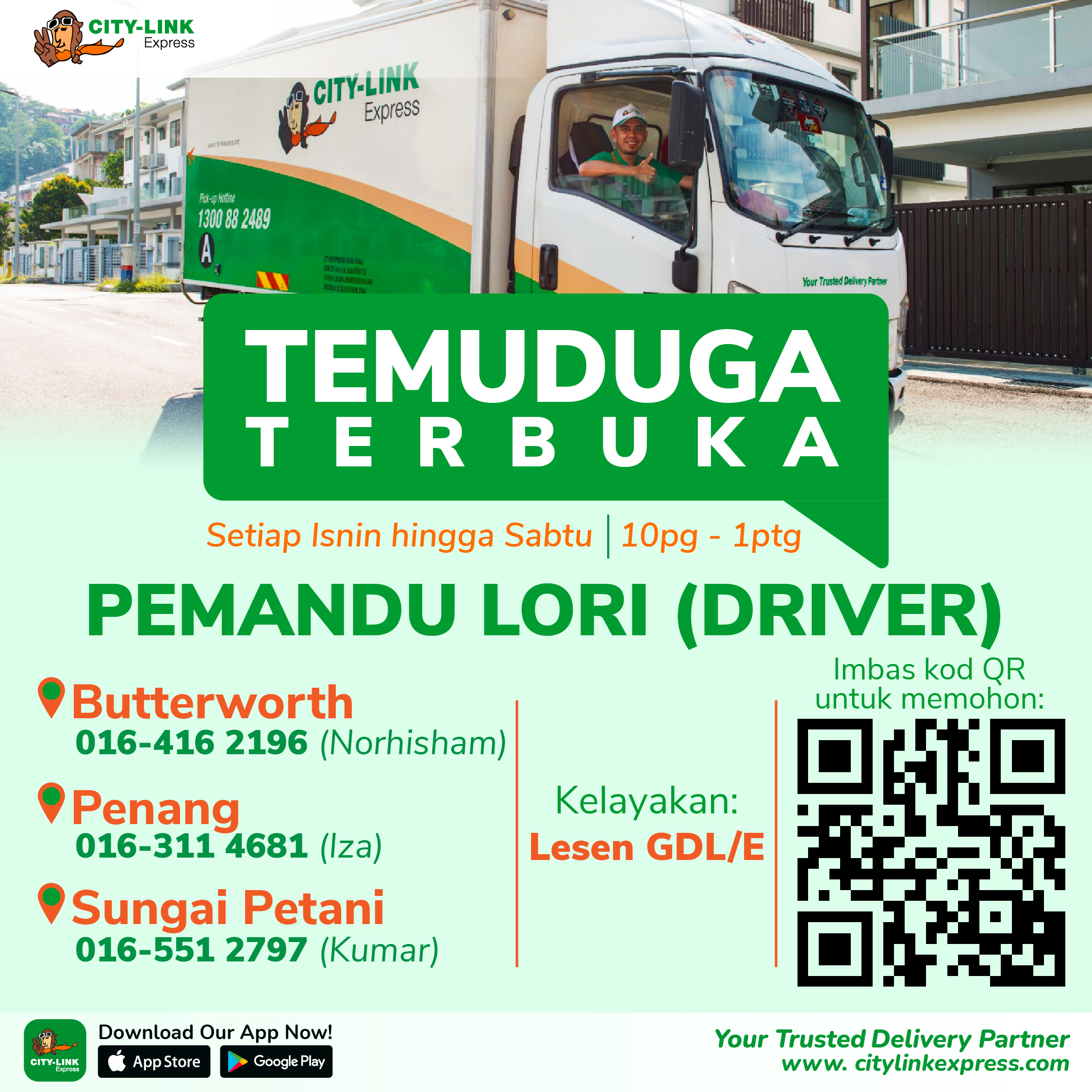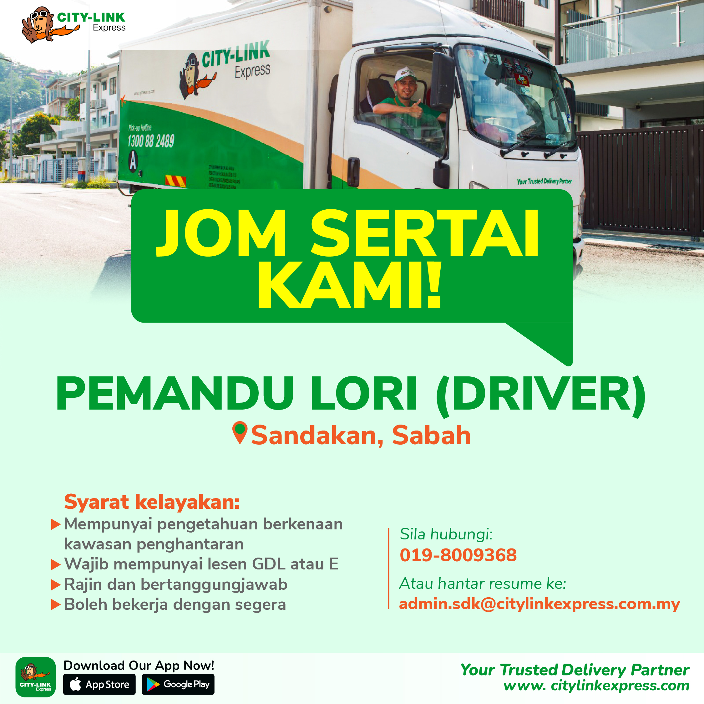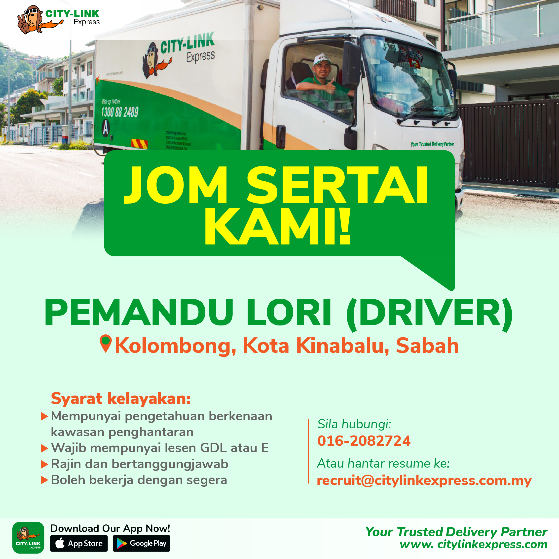 If you would like to reach our recruitment personnel, you can always send us an email at recruit@citylinkexpress.com.my