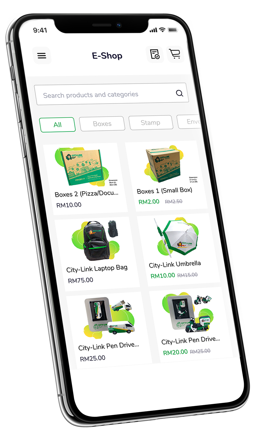 Our online store allows you to purchase City-Link Express products and is now available in the Mobile App! Get our prepaid stickers for your parcels or documents, as well as shipping supplies like boxes and plastic flyers, merchandises, and more!