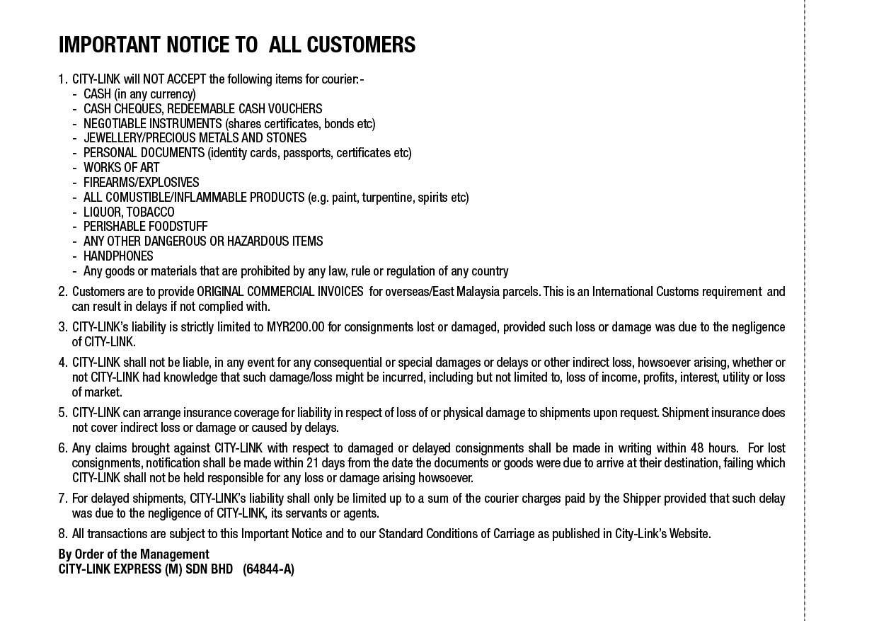 Hello and thank you for reaching out to City-Link customer service team.